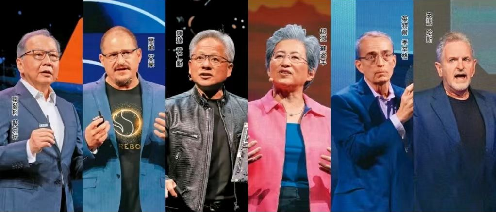 金庸武俠小說裡黃藥師、洪七公、歐陽鋒、段智興、王重陽等五大高手,在華山之巔大戰7天7夜,劇情精采絕倫、膾炙人口,而今年的台北國際電腦展(COMPUTEX)也如同華山論劍般的精采。過去各自在伺服器、電腦處理器、手機、顯示卡等領域雄霸一方的晶片大咖,包括輝達(NVIDIA)、超微(AMD)、英特爾(Intel)、高通(Qualcomm)、聯發科、安謀(Arm)齊聚一堂,同場比拚、互相叫陣,並且拉攏台灣科技業者的種種過招,絲毫不輸小說情節。