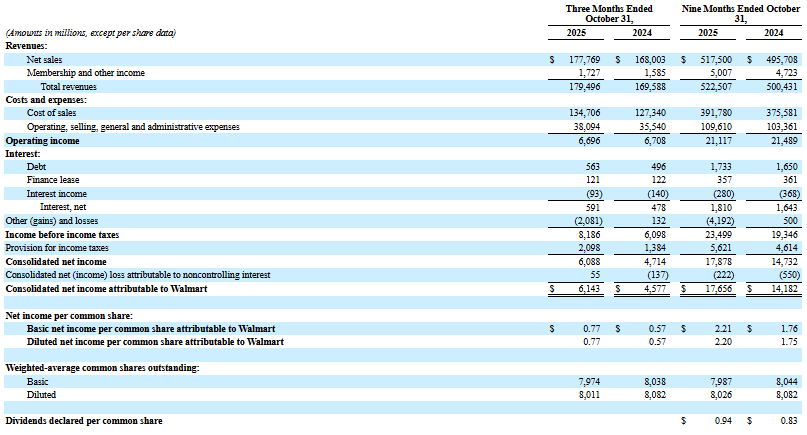 2025財年前三季度(截至2025年10月31日)
